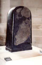 三4摩押王米沙 米沙以其碑文(摩押石碑)著名。碑文详述摩押从前受以色列所控制,并且颂扬米沙解放他们的功绩。这个四英尺高的石碑1868年发现于亚嫩河北岸底本的遗址。碑文纪念神殿落成,指名述及暗利,又提到他的儿子(亚哈,也有可能是他孙儿约兰),但未书其名。内容说到摩押国神基抹曾经借以色列惩罚自己的地,但如今则带来胜利。下一节圣经提到米沙成功地摆脱以色列的控制(亚哈谢年间?),故此摩押石碑的事件发生在本段记载的事件之前。