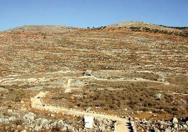 五1亚实突 亚实突距离海岸约三英里,在耶路撒冷正西面。遗址的地点位于现代亚实突市南面约三英里半。它的卫城占地二十英亩,下城则超过一百英亩。乌加里特文献提及这城是个贸易中心,考古的挖掘也在卫城找到了晚铜器时代大规模定居的遗迹。在此的迦南城市被海上民族所毁,非利士人接而在此定居,这城遂成为非利士五大都城之一。撒母耳时代的铁器时代遗迹是在遗址的第十个文化层,属非利士文化。这时本城已有优良的城防,并且开始从卫城往下城扩建。这文化层至今未有庙宇出土。