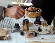 九2墨盒子 古代一般文士所携带的墨盒子可以在写字时用作调色板,里面装着笔和盛墨的容器;墨通常有黑、红二色。本段中用来描述墨盒子的字所包括的埃及借词(qeset),证明它是某一种的调色板。这种板上有放笔的空档和两个装墨的凹陷处。无数埃及古墓壁画都有这种调色板。笔用灯心草或苇杆制成,削尖为可以按写字需要用作毛笔或尖笔。墨用碳和树胶调和制作。红墨则加上氧化铁制成,用来书写标题或绘制书卷上的线条。此外,写字工具还包括削笔的刀子(耶三十六23)。