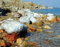 四十七8盐海变甜 死海的盐水化为淡水是个神迹性的变化。死海位于海拔之下一千二百九十六英尺,是全世界的最低点。死海没有出口,所以其水的矿物质含量极高。从不同水源流下来的水每日带来七百万吨的各种矿物。水分蒸发后把矿物质留下。死海的盐渍度是百分之二十六至三十五(相较之下,美国犹他州的大盐湖的盐渍度是百分之十八,海洋的平均盐渍度则是百分之三点五)。