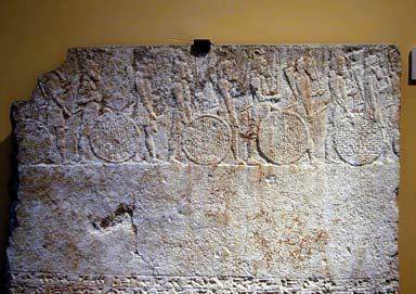五28弓、箭、马蹄、战车 亚述的马没有蹄铁,所以有硬蹄的马很珍贵,尤其是在叙利亚-巴勒斯坦山区。弓是亚述军队的主要攻击武器。箭头使用不同材料制成,有骨头、角,以及各样金属。战车上可容纳四人,有六至八个很重的辐轮。