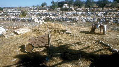 五1~6栽培果园的准备与维护 葡萄是古代近东的主要出产,因此,当时都知道如何照管葡萄园。在以色列多石的山区,尤其需要保持水土,才能结出理想的果实。农夫会把山区地的石头清除,然后用石头砌成梯田状,防止水土流失。他们也用石头盖小房子或是守望塔,近收成的时节,可以保护作物。农夫也要不断用锄头清除树与树中间的杂草,以免吸收土里的水分。他们也会使用不同的灌溉方法,确保地里有足够的水。如果地的水分不够,结出的葡萄会又小又酸。另外,农夫也会用石头在葡萄园附近建酒醡或酒池,就不用担心葡萄搬运的时候受损。